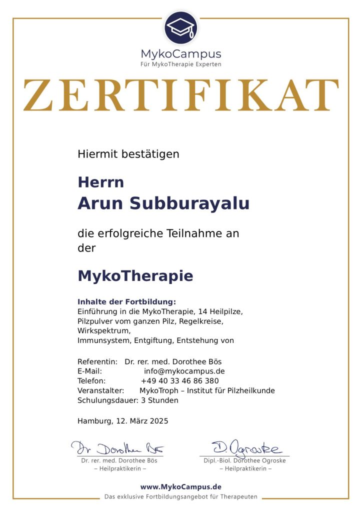 European Academy for Ayurvedic Medicine, Ayurvedic Physican.